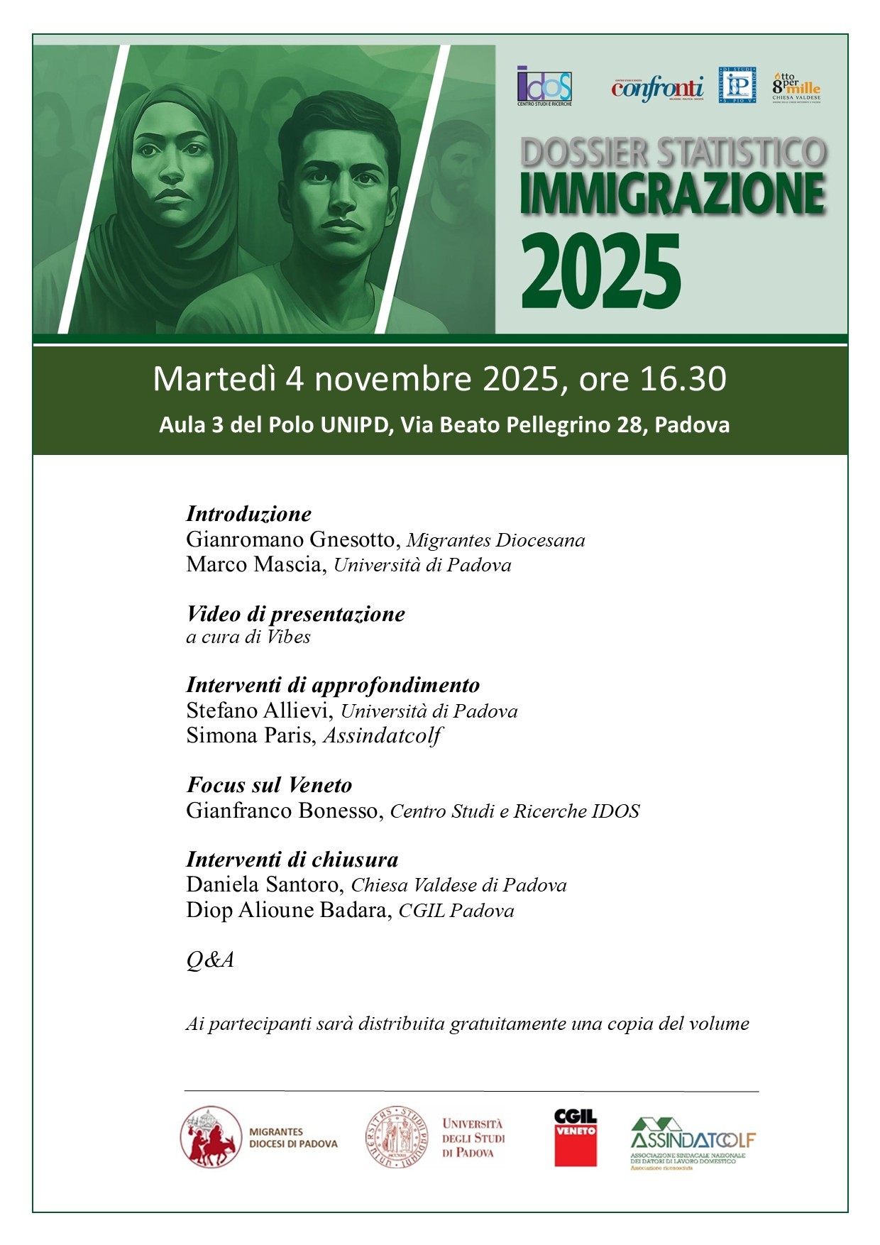 Il Dossier Statistico Immigrazione 2025 sarà presentato contemporaneamente in tutte le Regioni il 4 novembre 2025.